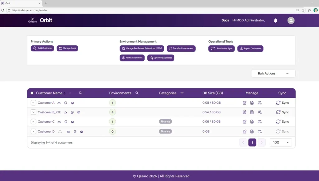 Qezaro Orbit is a tool designed specifically for Dynamics 365 Business Central partners. It helps partners efficiently manage multiple tenants, automate administrative tasks, and streamline environment maintenance — all in one portal.